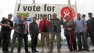 Die Industriegewerkschaft Bauen-Agrar-Umwelt (IG BAU) protestiert vor der IKEA Deutschland-Zentrale in Hofheim-Wallau für die Einhaltung der Arbeit... mehr ...